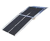 Brand : Prairie View Industries ,Model : UTW630Portable and lightweight aluminum ramp folds conveniently to approximately a quarter of its opened size for ease in carrying and storage. It comes with a handle and carries like a suit case. The ramp has an extended hook (lip) on the support end that is designed to aid in the loading of wheelchairs or scooters in or out of a van. The lip rests securely on the interior side of the vehicle rather than precariously on the rear bumper. A patented center joint hinge eliminates the major pinch point that is common with other manufacturers folding ramps. The ramp has welded fabrication for strength and the entire walking surface is covered with anti-slip traction tape and provides maximum traction even when the ramp or wheels of chair are scooter are wet. Uniquely safety tested and listed by Underwriters Laboratories, Inc provides the assurance that the ramp will hold its rated capacity. The ramp width is 30" and designed to work with any wheel configuration of wheelchair or scooter. A visual aid is attached to determine if the ramp is on a safe slope prior to use. The ramp can also seperate into two sections for carrying Ramps come complete with safety instruction video and safety straps for additional safety.
