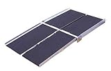 Brand : Prairie View Industries ,Model : WCR630Portable and lightweight aluminum ramp folds conveniently to approximately a quarter of its opened size for ease in carrying and storage. It comes with a handle and carries like a suit case. A patented center joint hinge eliminates the major pinch point that is common with other manufacturers folding ramps. The ramp has welded fabrication for strength and the entire walking surface is covered with anti-slip traction tape and provides maximum traction even when the ramp or wheels of chair are scooter are wet. Uniquely safety tested and listed by Underwriters Laboratories, Inc provides the assurance that the ramp will hold its rated capacity. The ramp width is 30" and designed to work with any wheel configuration of wheelchair or scooter. A visual aid is attached to determine if the ramp is on a safe slope prior to use. The ramp can also seperate into two sections for carrying Ramps come complete with safety instruction video and security pins for additional safety.